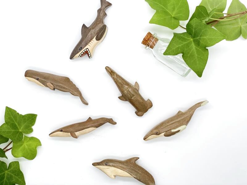 クジラ3種、サメ2種、イルカ1種の海マグネットです