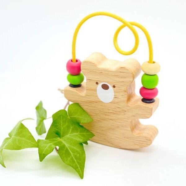ビーズをくるくる動かして遊ぶくまさんのルーピング遊びです